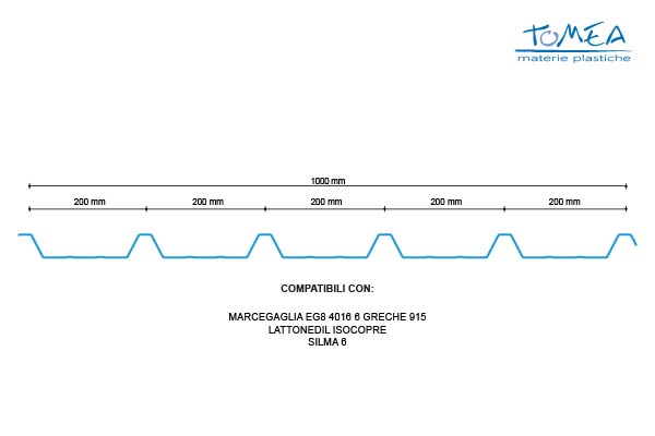 Sistema Modulare Grecato Ondulato in Policarbonato Microalveolare UV Protetto Traslucido Spessore 2,5mm Larghezza 1000mm 6 Greche