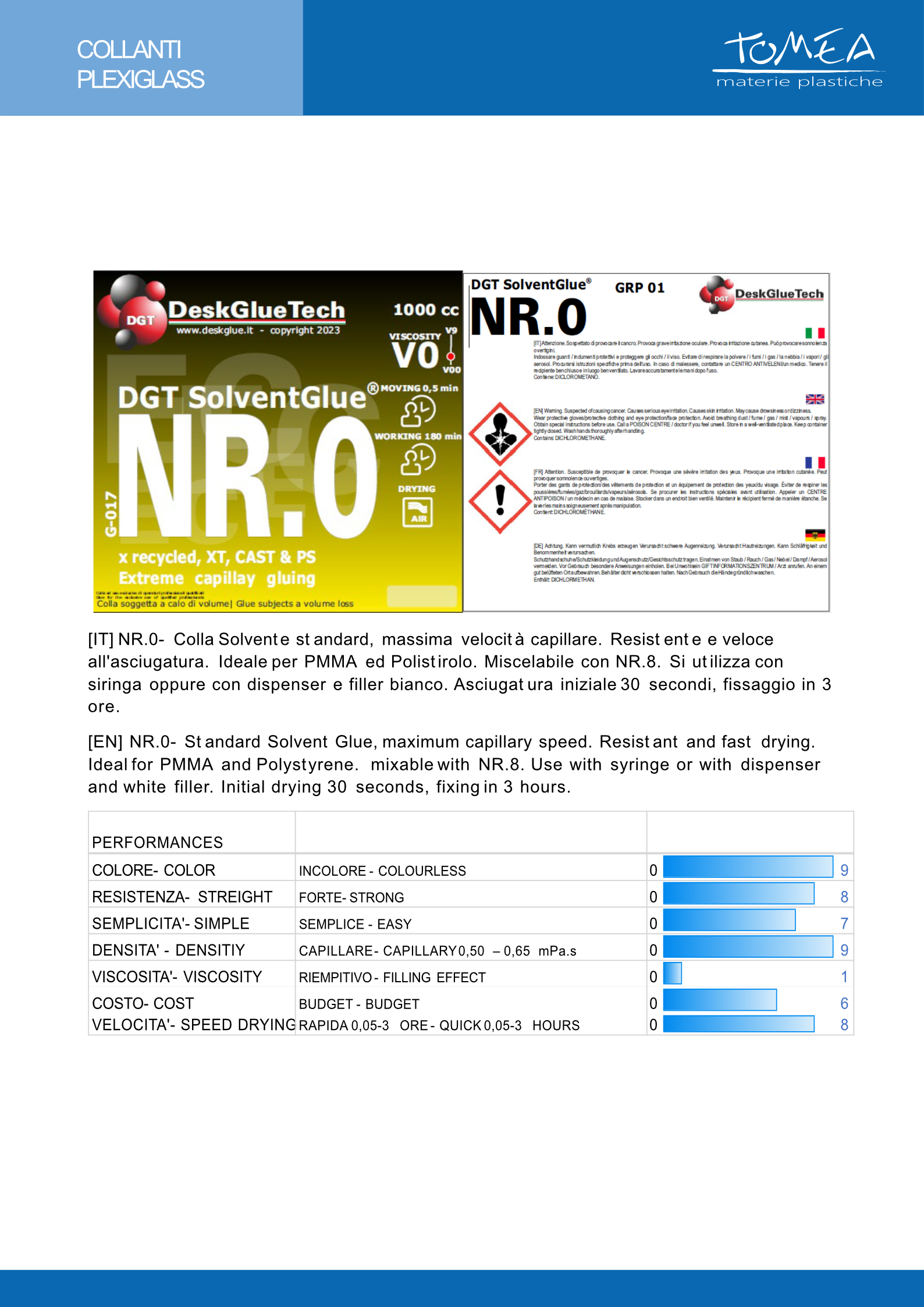 Collante Solvente Capillare DGT SolventGlue NR.0/V0 1Kg per PMMA Estruso